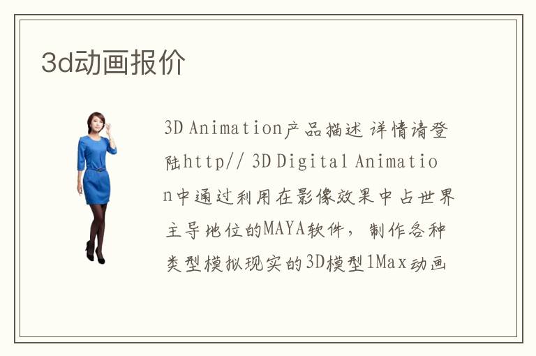 汇集了家3D动画3D动画公司/厂家提供的最新6条产品信息,3D动画3D动画报价/价 3D动画3D动画相关搜索、相关其他产品信息等,欢迎您的浏览! 面议 印刷|闪动画|3
