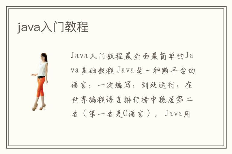 Java入门教程最全面最简单的Java基础教程 Java是一种跨平台的语言,一次编写,到处运行,在世界编程语言排行榜中稳居第二名(第一名是C语言)。 Java用途广泛,可以用来