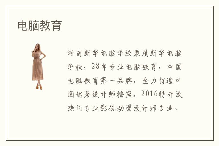 河南新华电脑学校隶属新华电脑学校,28年专业电脑教育,中国电脑教育第一品牌,全力打造中国优秀设计师摇篮。2016特开设热门专业影视动漫设计师专业、建筑装饰