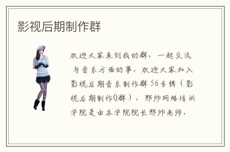 56专辑(影视后期制作Q群),邢帅网络培训学院是由本学院院长邢帅老师,副院长郭洪昌老师创办,始建于2016年元月,本学院自建院之初就本着以学员为本,授