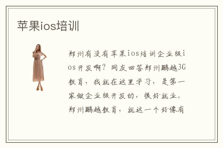 郑州有没有苹果ios培训企业级ios开发啊?网友回答郑州鹏越3G教育,我就在这里学习,是第一家做企业级开发的,很好就业。郑州鹏越教育,就这一个好像有,我在网上查出来