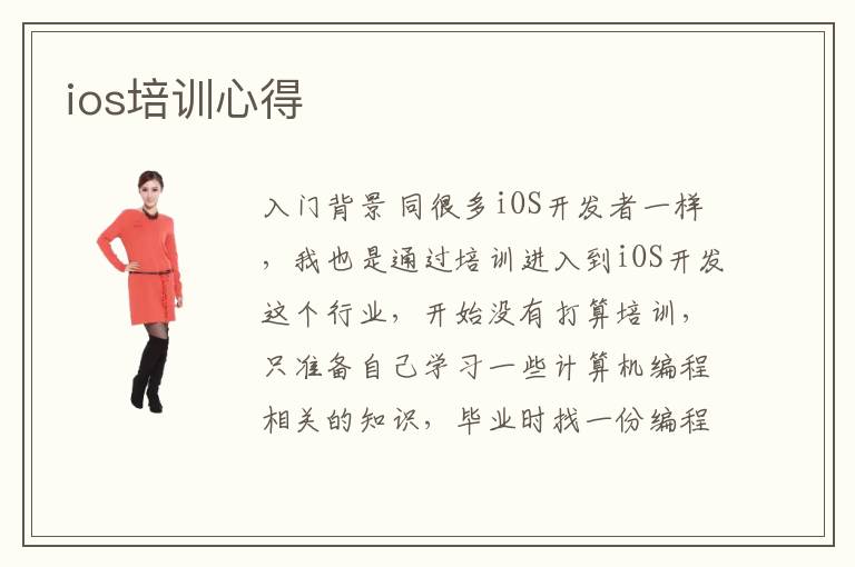 入门背景 同很多iOS开发者一样,我也是通过培训进入到iOS开发这个行业,开始没有打算培训,只准备自己学习一些计算机编程相关的知识,毕业时找一份编程相关工作(本人是