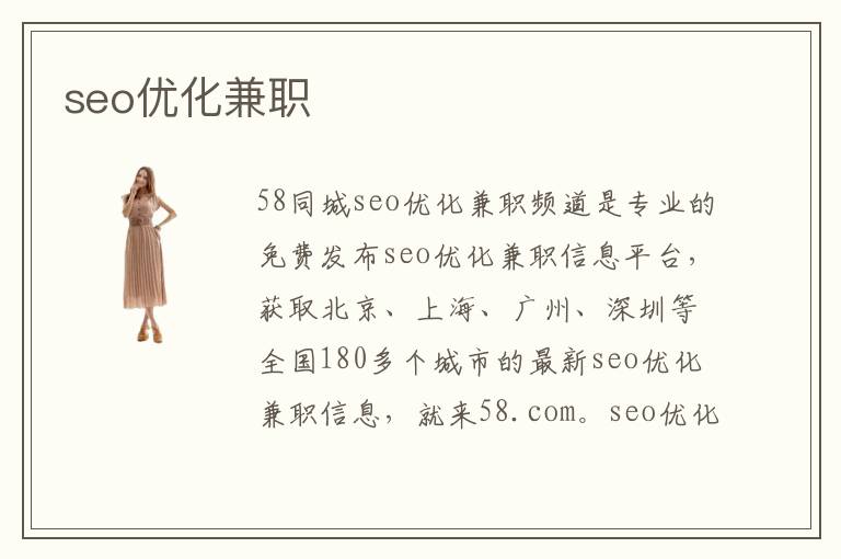 58同城seo优化兼职频道是专业的免费发布seo优化兼职信息平台,获取北京、上海、广州、深圳等全国180多个城市的最新seo优化兼职信息,就来58.com。