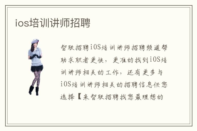 智联招聘iOS培训讲师招聘频道帮助求职者更快,更准的找到iOS培训讲师相关的工作,还有更多与iOS培训讲师相关的招聘信息供您选择【来智联招聘找您最理想的iOS培训讲师工