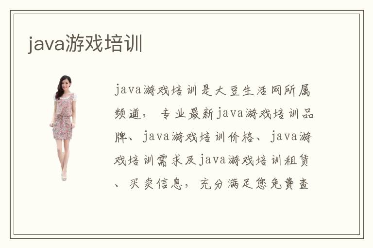 java游戏培训是大豆生活网所属频道, 专业最新java游戏培训品牌、java游戏培训价格、java游戏培训需求及java游戏培训租赁、买卖信息,充分满足您免费查看/发布动漫/游戏java游