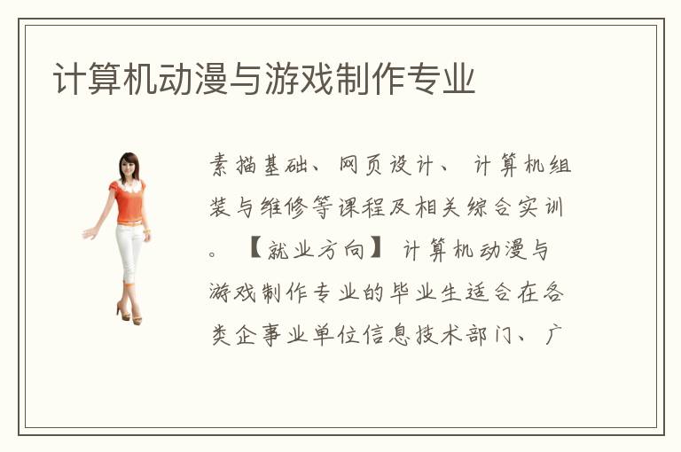 素描基础、网页设计、 计算机组装与维修等课程及相关综合实训。 【就业方向】 计算机动漫与游戏制作专业的毕业生适合在各类企事业单位信息技术部门、广告设计公司、平面广