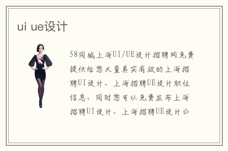 58同城上海UI/UE设计招聘网免费提供给您大量真实有效的上海招聘UI设计、上海招聘UE设计职位信息,同时您可以免费发布上海招聘UI设计、上海招聘UE设计公司职位信息。最好