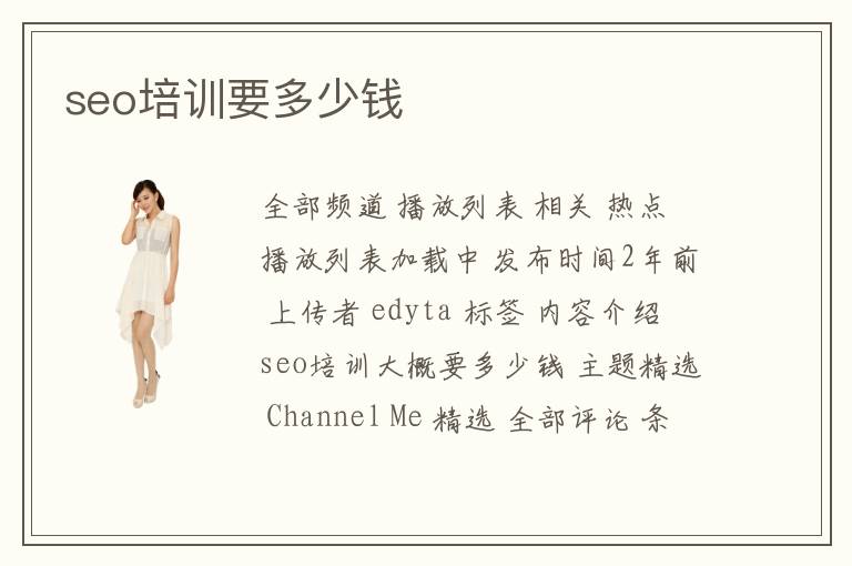 全部频道 播放列表 相关 热点 播放列表加载中 发布时间2年前 上传者 edyta 标签 内容介绍 seo培训大概要多少钱 主题精选 Channel Me 精选 全部评论 条评论 验
