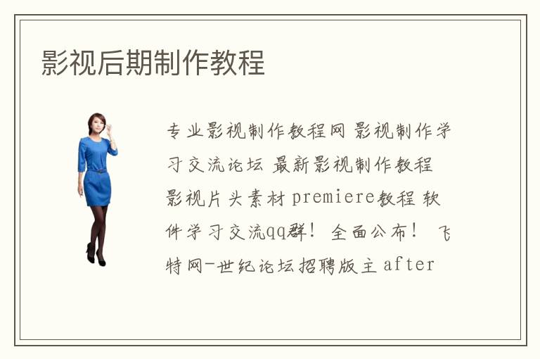 专业影视制作教程网 影视制作学习交流论坛 最新影视制作教程 影视片头素材 premiere教程 软件学习交流qq群!全面公布! 飞特网-世纪论坛招聘版主 after effects教程 premiere教程