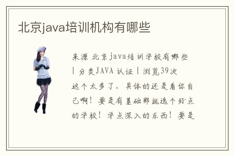 来源 北京java培训学校有哪些 | 分类JAVA 认证 | 浏览39次 这个太多了。具体的还是看你自己啊!要是有基础那就选个好点的学校!学点深入的东西!要是一点都没有找个靠谱