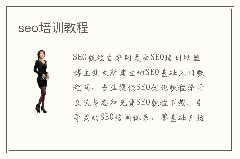 引导式的SEO培训体系,零基础开始系统培训SEO,包括符合SEO的网站建设、站内SEO优化、网站长尾体系建设、网站优化标准、群站链轮方案、SEO团队建设等。报名QQ