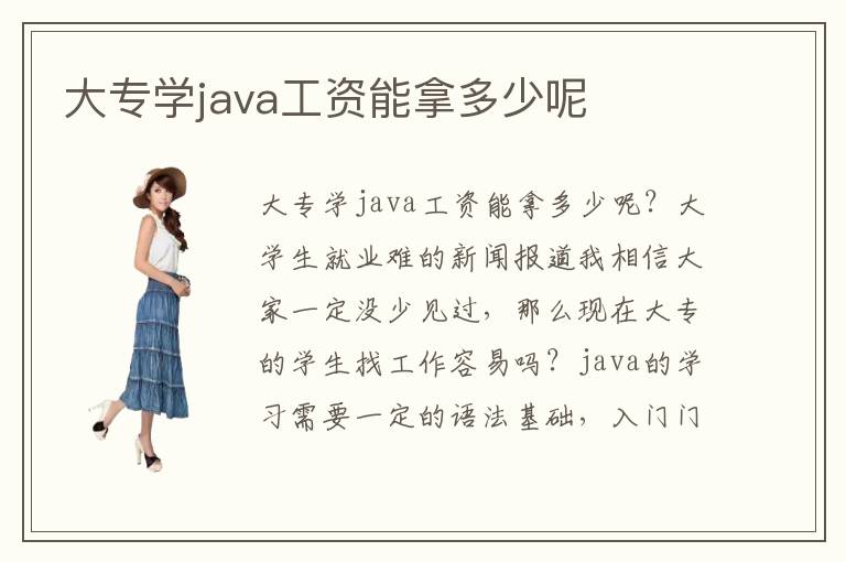 大专学javajava工资能拿多少呢?大学生就业难的新闻报道我相信大家一定没少见过,那么现在大专的学生找工作容易吗?java的学习需要一定的语法基础,入门门槛较高,学习起来不是那么容易的,因此各大企业对于高薪java软件开发设计工程师的招聘要求,更看中的是人才的技术能力,因此扎实的java基础才能帮助你找到高薪工作,工资的多少决定于你的能力。