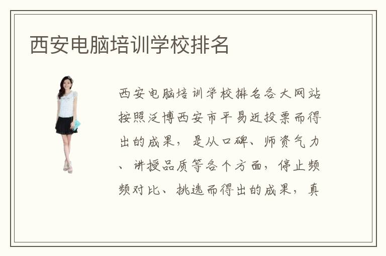 西安电脑培训学校电脑培训学校排名各大网站按照泛博西安市平易近投票而得出的成果,是从口碑、师资气力、讲授品质等各个方面,停止频频对比、挑选而得出的成果,真实性很大。计算机专业是一个冗长而又死板的学习进程,需要学习者具有清楚的逻辑思惟才能,还需具备凉静的阐发才能。对峙也是作为学习计算机专业的学生最根基的才能,固然也是最最主要的一点,是学好it技术的第一步。西安电脑培训电脑培训学校排名推荐电脑学校