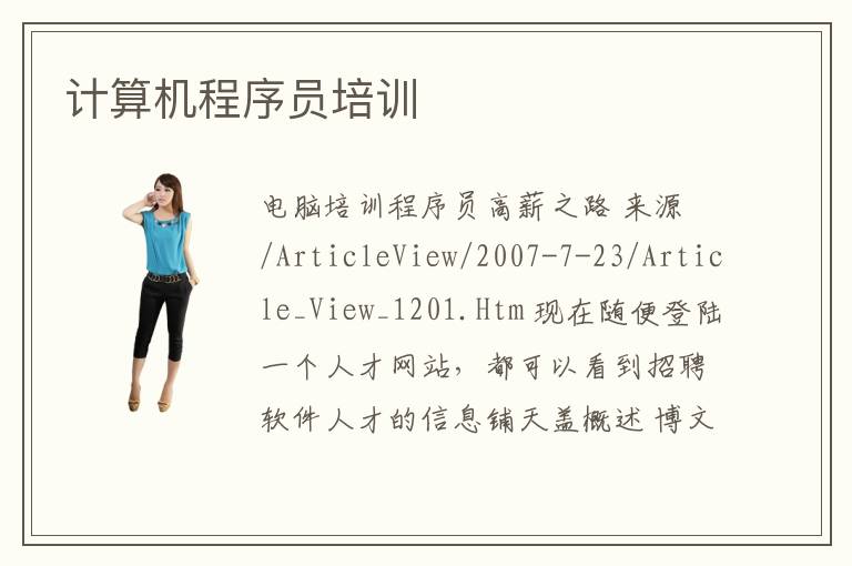 电脑培训程序员高薪之路 来源 /ArticleView/2007-7-23/Article_View_1201.Htm 现在随便登陆一个人才网站,都可以看到招聘软件人才的信息铺天盖