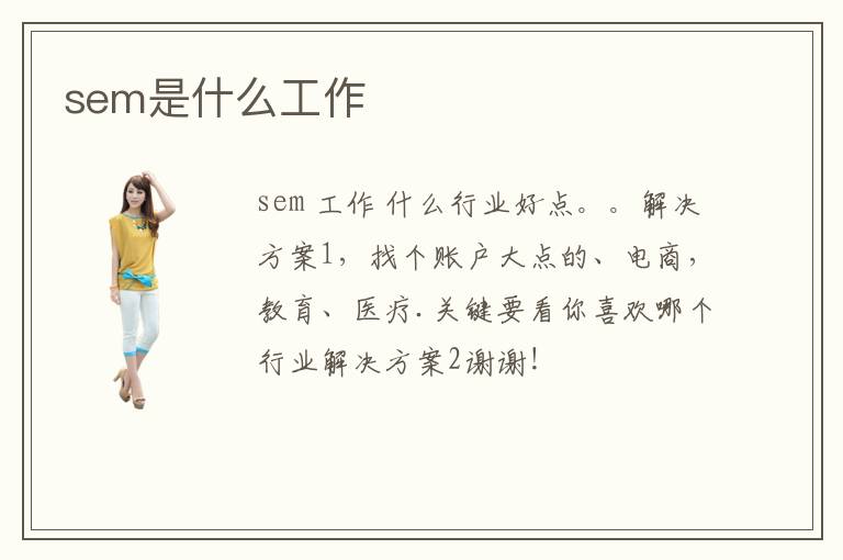 sem 工作 什么行业好点。。解决方案1,找个账户大点的、电商,教育、医疗.关键要看你喜欢哪个行业解决方案2谢谢!