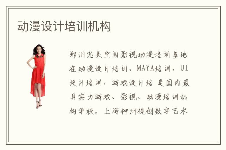 培训网提供最详实动漫设计培训学校,动漫设计培训中心的、地址等报名信息,以及各家动漫设计培训机构的学校介绍,学员点评,师资力量和环境图片等。