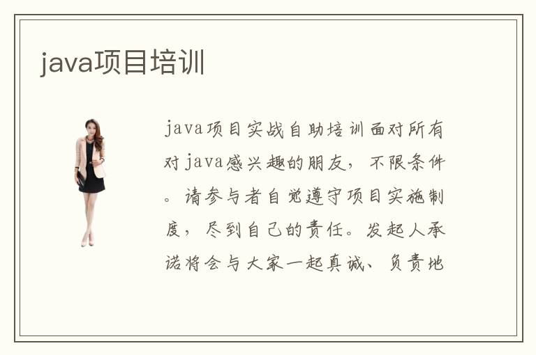 java项目实战自助培训面对所有对java感兴趣的朋友,不限条件。请参与者自觉遵守项目实施制度,尽到自己的责任。发起人承诺将会与大家一起真诚、负责地相互帮助,切实解
