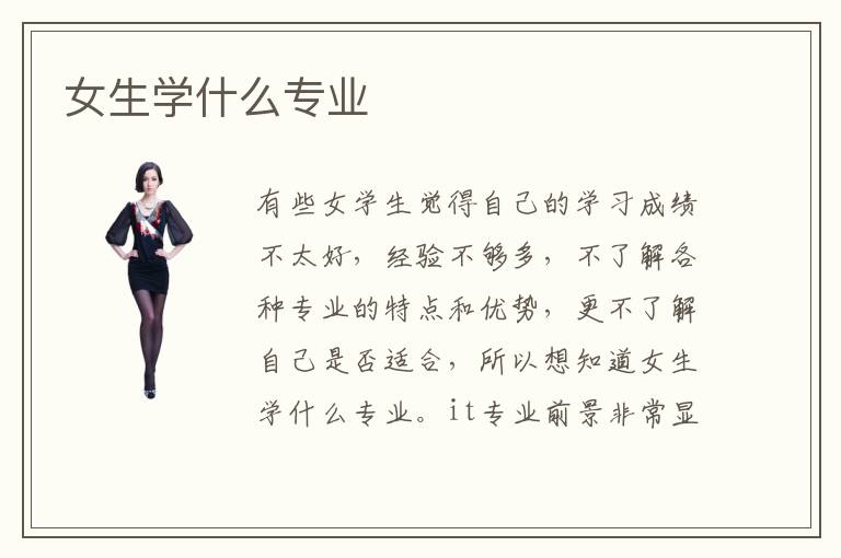 有些女学生觉得自己的学习成绩不太好,经验不够多,不了解各种专业的特点和优势,更不了解自己是否适合,所以想知道女生学什么专业。it专业前景非常显著,大家如果觉得平时的学习过程比较吃力,或者是有一些抽象性的内容,都可以选择这些补习班,由老师全程辅导,相信价值会更容易体现。专业培训机构优势多种多样,首先帮助学生利用好好学习的时间,掌握更多重要的课程,在工作方面拥有比较强的技能。另外,补习班可以提供全程的指导和服务,只要学生在专业方面有一些难点或者是疑问,不妨马上向补习班的老师请教,老师能提供许多详细的介绍,通过多种方式教学,比如在线教学以及1对1教学、上门指导等等,将多种解题的经验和思路呈现给大家,学生往往收获会明显很多。