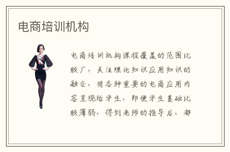 电商培训机构课程覆盖的范围比较广,关注理论知识应用知识的融合,将各种重要的电商应用内容呈现给学生,即便学生基础比较薄弱,得到老师的指导后,都有一些改善的空间。电商培训机构有好处吗,电商培训机构有许多好处,比如可以把握好许多重要的技能,在电商平台中真正展示水准,利用这些技能,得到更多利益和好处,实现自己的理想目标。电商培训机构热不热门,电商培训机构相当热门,学习水准高,老师能力强,可以带来许多优质辅导方案,大家在培训过程中,拥有更多显著的进步。但学生不能够只依赖电商培训机构,毕竟现在培训机构很多,质量参差不齐,如果不小心挑选不靠谱的补习班,效果难以凸显,很难展示出自己的实力,浪费许多时间,还会影响学习状态和情绪。