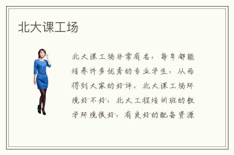 北大课工场非常有名,每年都能培养许多优秀的专业学生,从而得到大家的好评。北大课工场环境好不好,北大工程培训班的教学环境很好,有良好的配备资源,提供许多前沿的教学辅导课程,使大家的电子计算机学习能力有更大的突破。北大课工场有就业压力吗,北大课工场培训机构的就业压力比较小,因为老师可以制定不同的教学任务,在每个阶段都会做出检测,关注学生的成长动态。如果学生感觉压力很大,进步效果不够显著,经验不够多,都可以适当参与这些补习班的课程,也许有一点点收获。其实在人工智能或计算机专业学习过程中,总是出现一些未知领域的知识,导致学生的学习效果不够好,或者是学习速度跟不上,大家要适当放慢脚步,听老师安排,认真完成每一天的任务和作业。