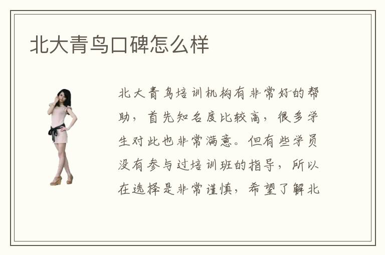 北大青鸟培训机构有非常好的帮助,首先知名度比较高,很多学生对此也非常满意。但有些学员没有参与过培训班的指导,所以在选择是非常谨慎,希望了解北大青鸟口碑怎么样,避免找到劣势教学机构。北大青鸟重不重要,北大青鸟的教学课程比较丰富,积累多年的补习经验,关注学生每一个阶段的学习情况,选择对应性的补习方法,让大家可以在有限的时间内,积累更多知识点,展示出个人的实力。北大青鸟远程指导可以赢得很多学生欢迎,主要是老师有细致补习方向,提供多元化的培训内容,每个阶段都会给予相应的指导,使学生可以赢得更多优势和好处。假如学生在培训时找不到方向,培训过程非常迷茫,成绩非常普通,都可以得到北大青鸟专业老师的专业辅导,成绩应该有不错的提高。