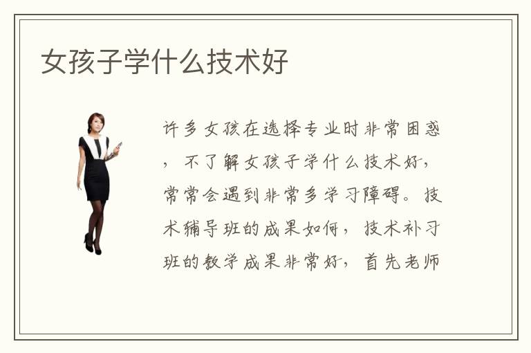 许多女孩在选择专业时非常困惑,不了解女孩子学什么技术好,常常会遇到非常多学习障碍。技术辅导班的成果如何,技术补习班的教学成果非常好,首先老师可以把各种前沿的知识点整理出来,向大家讲解和分析。每个阶段都有不一样的课程,让大家可以分阶段进行掌握,把握好自己的学习节奏,带来自己满意的学习效果。技术培训压力大不大,技术培训班一般不会给学生太大压力,因为老师有严谨的要求,在工作岗位上有多年的经验积累,通过清晰的语言向大家呈现,制定多样化的方案和课程,关注学生的学习缺点,及时进行弥补。虽然说有些问题学生可能会忽略掉,但老师会及时向大家解释,然后布置有效的作业和任务,让大家在家里完成,充分利用随便时间,改善知识的掌握情况。