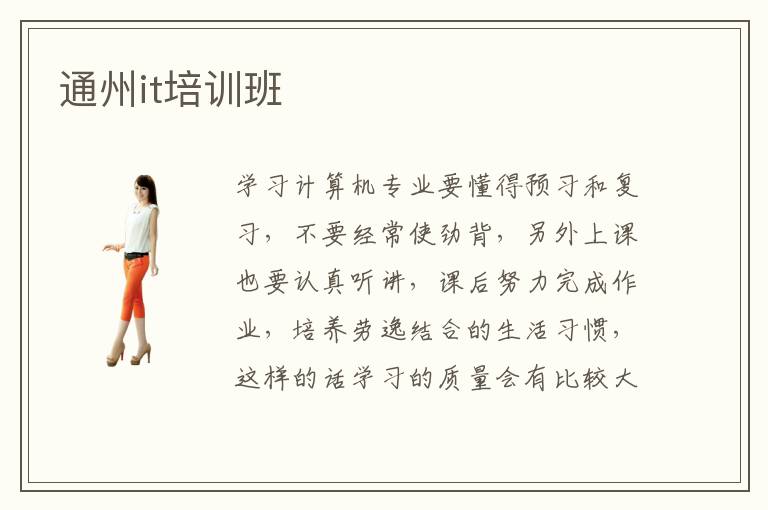 学习计算机专业要懂得预习和复习,不要经常使劲背,另外上课也要认真听讲,课后努力完成作业,培养劳逸结合的生活习惯,这样的话学习的质量会有比较大的变化。有些学生每天都学习很晚,睡眠质量不够充足,第2天早上的精神状态特别不好,影响学习的效果,也很难得到自己想要的成绩。为了保障很好的技能优势,学生可以看看通州it培训班,了解各种辅导的内容。it培训班复习时间,it培训班课程简单吗,计算机培训机构本身涉及很多应用知识,要是学生不懂得突破原有的基础,改善学习的水平,不妨报名计算机编程机构的课程,掌握更多应用内容。其实现在的计算机专业有很多方向,学习过程的负担也有点重,所以学生要有自己的专业知识理解,养成爱学习的习惯。