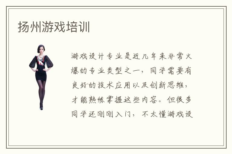 游戏设计专业是近几年来非常火爆的专业类型之一,同学需要有良好的技术应用以及创新思维,才能熟练掌握这些内容。但很多同学还刚刚入门,不太懂游戏设计的方法技巧,很难掌握实践操作的方式,更难完成游戏开发的项目。为了更快独立完成游戏设计的项目,同学不妨参加扬州游戏培训课程,了解重要的课程,比如计算机设计理论,现代媒体技术,创新思维训练等等,优化个人的专业理论知识,提高操作的水平,从而在各种领域中展示出个人的技术优势。游戏培训学校的好处主要是针对性强,应用优势突出,更注重学员的整体学习。游戏专业可以从事哪些工作,首先有些专业的学生可以考虑游戏动漫设计师,游戏软件开发师,动漫师以及多媒体设计师,数据游戏设计师等等。