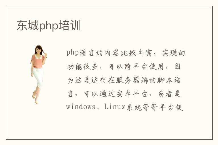 php语言的内容比较丰富,实现的功能很多,可以跨平台使用,因为这是运行在服务器端的脚本语言,可以通过安卓平台、或者是windows、Linux系统等等平台使用。另外,php消耗的资源很少,运行的效率很高,速度非常快,因此大大提高工作的效率。东城php培训php培训学校会分析这些php技术的特点,也会展示大量的应用项目和领域,解决一些专业知识的问题。php入门指导很重要,老师会根据大家的学习阶段和技术水准安排课程。虽然说零基础的学生基础很薄弱,应用的经验不够多,但老师始终会关注学生的进步情况,也会安排恰当的辅导内容,结合劳逸结合的培训方式,为大家解决应用难关。另外,学生不太习惯平时的大班教学,还可以选择1对1指导或者网络教学,效率都很高。