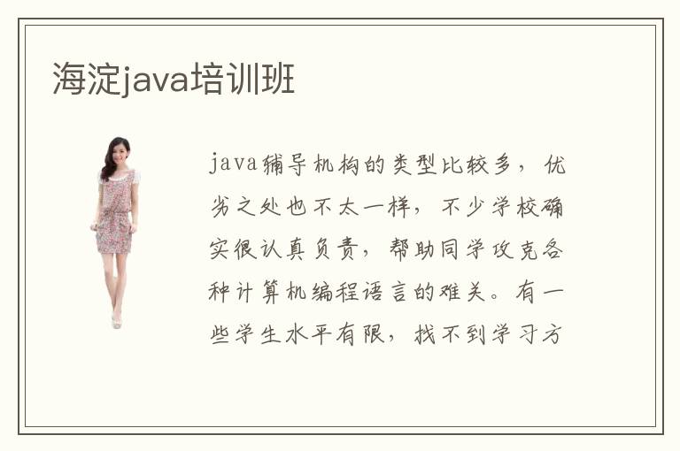 java辅导机构的类型比较多,优劣之处也不太一样,不少学校确实很认真负责,帮助同学攻克各种计算机编程语言的难关。有一些学生水平有限,找不到学习方式,所以会很困惑,不得不选择海淀java培训班的课程。java培训班的师资一般都比较强,因为老师已经在教学方面有很多年的技术经验,了解学生的能力以及学习的习惯,也会控制java学习的速度和进展,学生掌握之后成绩会更为突出。要是同学不太适应辅导班的课程,老师会适当降低速度,使大家能跟上辅导班的课程节奏,也能快速积累新的技术。java培训班水准特别高,一方面是教学课程很完善,另外一方面是有全面辅导,不管是理论,还是应用,都有大量的训练措施,所以学生通过老师的培养后,成绩会逐渐改善。