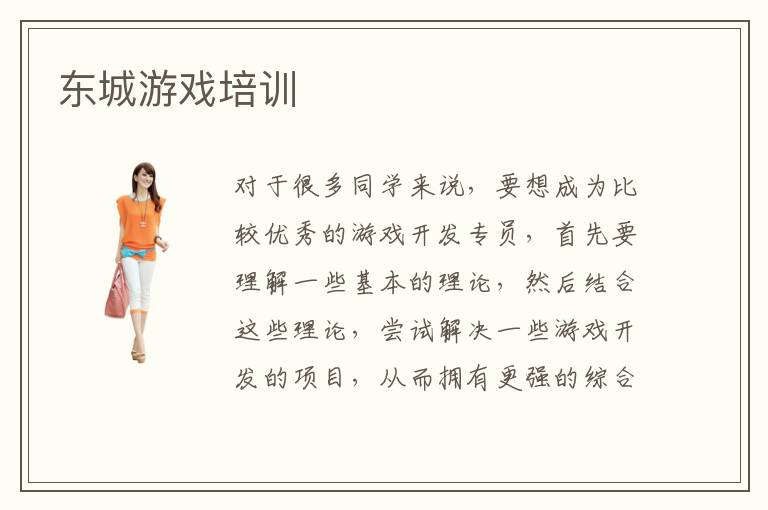 对于很多同学来说,要想成为比较优秀的游戏开发专员,首先要理解一些基本的理论,然后结合这些理论,尝试解决一些游戏开发的项目,从而拥有更强的综合水准。东城游戏培训学校的知识结构非常完整,有利于培养同学的学习思维。老师也会巩固和基础,提升同学的专业素养和应用水平。游戏开发有没有难度,游戏开发训练当然有一定的难度,很多同学在刚刚开始学习游戏开发项目时,总是会发现抽象内容太多,而且有很多流程和环节都没有接触过,很难独立完成工作。但是报名某些补习班后,同学便可深入理解游戏开发的任务,也可以学习很多重要的游戏开发技术和细节。因此学生有条件的情况下,可以找到高质量的游戏开发补习班,经过系统的训练,应该有更大的提升空间。