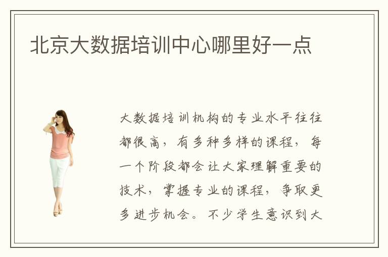 大数据培训机构的专业水平往往都很高,有多种多样的课程,每一个阶段都会让大家理解重要的技术,掌握专业的课程,争取更多进步机会。不少学生意识到大数据分析的内容特别复杂,要求越来越高,如果没有快速的学习方法,有可能会拖后腿,被时代淘汰。这时可以报名许多优质的数据分析辅导班,由专业老师进行严格的训练,成绩会特别高。北京大数据培训大数据培训中心哪里好一点,考虑大数据培训中心的时候,要着重了解每一个学校的课程安排、学习的能力、培训成果等等。大数据培训中心的收费不是完全一致,因为有些学校教学水平有保障,专业能力强,收费更贵。大数据是什么,大数据是各种复杂数据的集合,无法在一定的时间范围内利用软件进行捕捉,需要有更多新的模式进行处理。