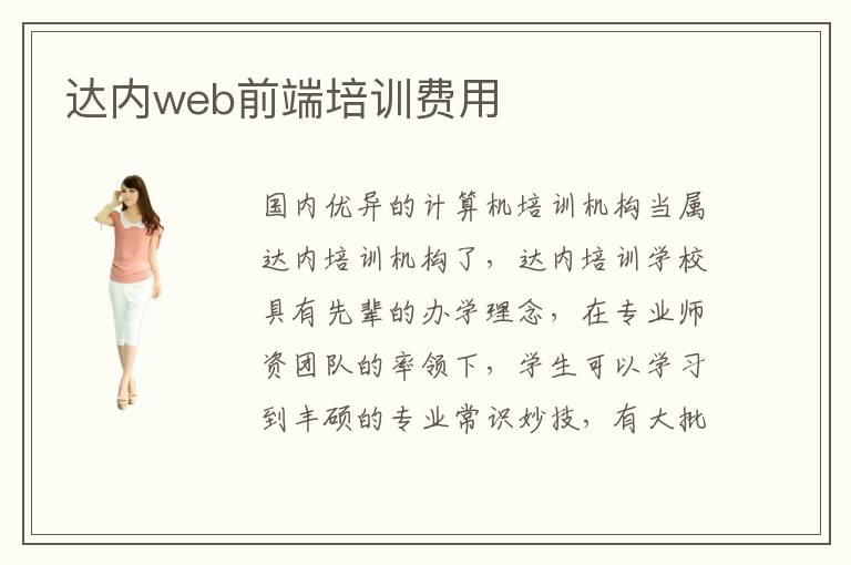 国内优异的计算机培训机构当属达内培训机构了,达内培训学校具有先辈的办学理念,在专业师资团队的率领下,学生可以学习到丰硕的专业常识妙技,有大批的专业常识储蓄作为支持。达内培训机构以web培训作为热门专业,吸收了多量生源,之前卫的讲授理念、高明的讲授技术具有了一个良好的口碑。达内web前端培训费用多吗达内web前端培训学费是多少达内web前端课时费是多少达内web前端培训费用推荐电脑学校