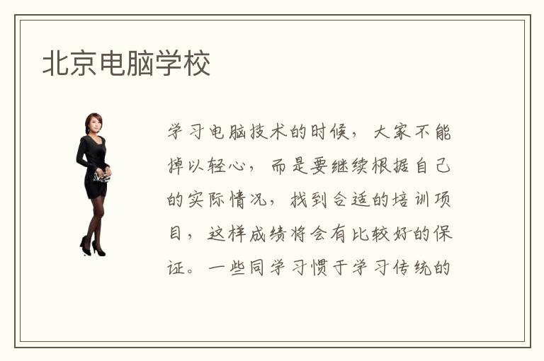 学习电脑技术的时候,大家不能掉以轻心,而是要继续根据自己的实际情况,找到合适的培训项目,这样成绩将会有比较好的保证。一些同学习惯于学习传统的理论知识,只关注书本的内容,不懂得怎么样去融入贯通,常常脱离应用和实践,成绩一直都比较普通,但好在可以报名专业的电脑技术培训机构。这些学校一般都会有多种培训的方向,而且会根据大家的实际情况提供一些培训的项目,确保大家都有很大的改进。北京电脑学校可以满足同学的学习要求,营造良好的氛围,也会设置由浅入深的培训计划。有的同学基础很差,老师就会着重讲解关于电脑的基础课程。电脑学校的能力很强,可以帮助大家开拓思路,找到学习的乐趣。电脑学校的教学方法主要有1对1教学、小班教学等等。