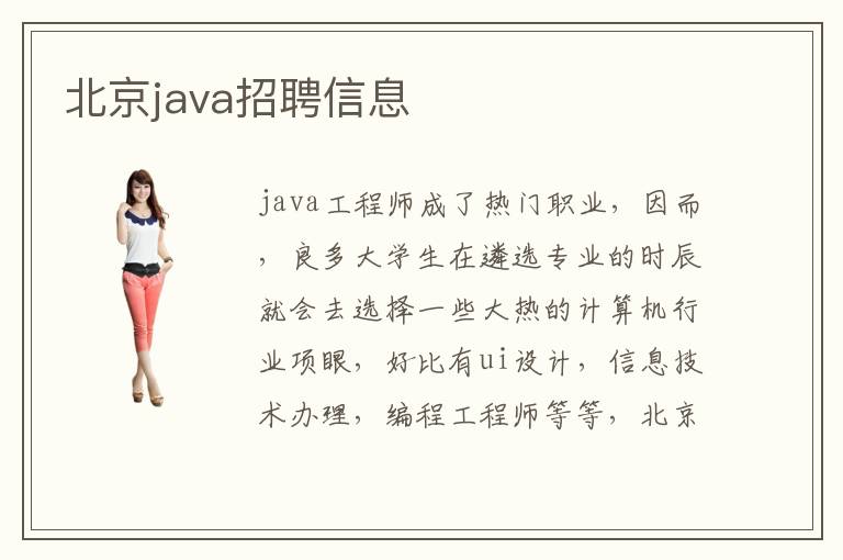 java工程师成了热门职业,因而,良多大学生在遴选专业的时辰就会去选择一些大热的计算机行业项眼,好比有ui设计,信息技术办理,编程工程师等等,北京JAVA设计师同样成了热门职业,既然那末多人求职,那末,北京java招聘信息一般宣布在哪里呢北京java招聘淡季是什么时辰北京java招聘靠谱吗北京java设计师招聘首要是在这什么水平北京java招聘信息推荐电脑学校