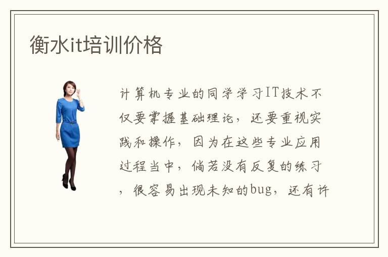 计算机专业的同学学习IT技术不仅要掌握基础理论,还要重视实践和操作,因为在这些专业应用过程当中,倘若没有反复的练习,很容易出现未知的bug,还有许多意想不到的困境。若提前做好排练,把各种潜在的问题找到,然后一步步弥补,设计出来的程序或者软件都比较可靠,也能提前减少许多的运行问题。同学们报班时也会非常关心衡水it培训价格,其实有一些it机构的口碑不错,实力很强,培养出来的学生也十分突出,收费比较贵,可能在1万到3万。it课外辅导用处很多,如提升同学们的成绩,培养同学的信心,创造良好的学习环境,释放学员的压力。it前景好不好,这些领域的待遇高,it专业的从业人员的平均年薪是10万到20万,有技术和经验的资深工程师每年可以达到百万。