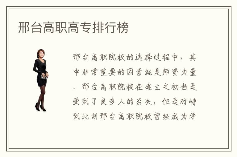 邢台高职院校的选择过程中,其中非常重要的因素就是师资力量。邢台高职院校在建立之初也是受到了良多人的否决,但是对峙到此刻邢台高职院校曾经成为学生们停止专业学习的好平台了。邢台高职院校模式通常都是大班和小班共同结合,学生和老师有更多交流的场所,而且老师也能针对不同学生的实际情况来采用合适的教学方法,让老师和学生拥有更多的进步。邢台高职院校具有国内专业的技术培训团队,都是在各行各业有过丰硕工作经历的高技术人材,在如许的讲授团队率领下必然可以获得最高品质的专业讲授,是以总的来讲邢台高职院校的各方面综关实力还是比较靠谱的,想要学习专业技术的同窗可以斟酌一下邢台高职院校呢。其实大家可以放心,现在的高职院校在教学质量等各个方面都是比较不错的,像德阳市中的德邢台职院校都是比较优秀的。