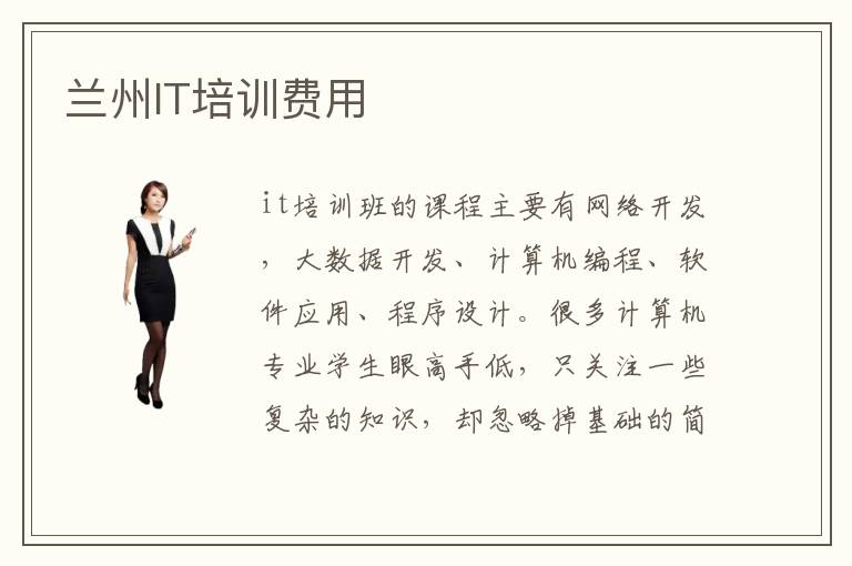 it培训班的课程主要有网络开发,大数据开发、计算机编程、软件应用、程序设计。很多计算机专业学生眼高手低,只关注一些复杂的知识,却忽略掉基础的简单内容,学习的时候没有很好的成果。在兰州it培训学校学习过的学员们都说在兰州it培训学校确实可以学到专业知识。老师就安排入门级的考核,挖掘同学的未知领域,然后再制定严格的强化训练方案。it培训班优势主要在于培养学生的思维,包括逻辑思维和应用思维,而且还会全程查漏补缺,找到学生比较容易错误的领域,然后及时纠正。兰州it培训班在it行业的热潮中如同雨后的春笋般涌现,许多培训机构都打着速成的口号,迎合大部分人心理,惰性是人的本性,每个人都想不遗余力的做任何事,所以入坑的人就很多了。