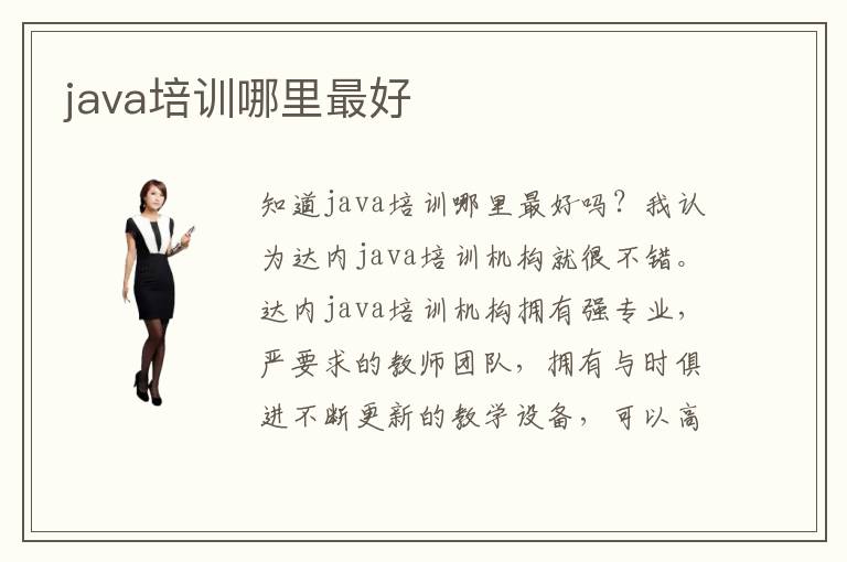 知道java培训哪里最好吗?我认为达内java培训机构就很不错。达内java培训机构拥有强专业,严要求的教师团队,拥有与时俱进不断更新的教学设备,可以高效率的学习java,在最短的时间精通java的相关技能知识。大家最担心的莫过于是就业这一方面,在就业这一方面,学员无需担心。达内保障每个学员的就业问题,一对一就业指导,提供java工程师面试相关技巧。