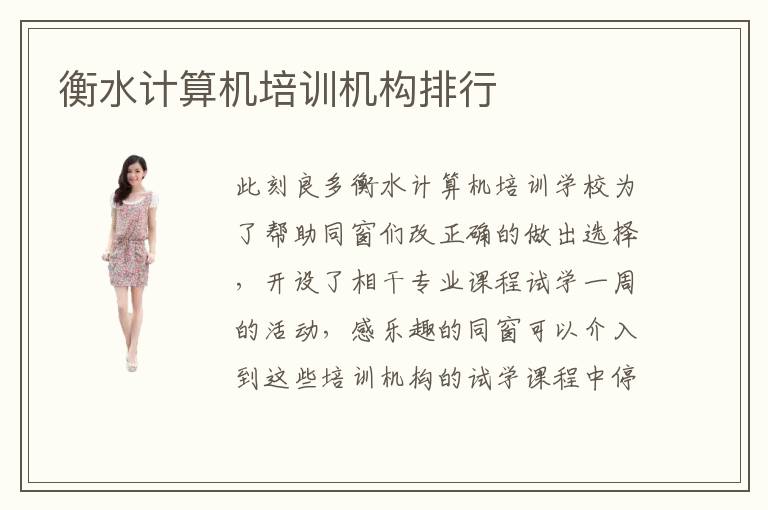 此刻良多衡水计算机培训学校为了帮助同窗们改正确的做出选择,开设了相干专业课程试学一周的活动,感乐趣的同窗可以介入到这些培训机构的试学课程中停止亲身休会。这样的自己才是最优秀的自己。很多人在选择衡水计算机培训学校的时候不知道该如何选择,不知道选择哪一所学校好。衡水计算机培训中心的衡水计算机培训机构实力怎么样。衡水市位于我国的衡水省,具有良多国内闻名的园林建筑,是一个汗青人文丰硕的都会。参考衡水计算机培训排名,可以在大家选择衡水地区的计算机培训学校的时候提供一些有建设性的意见,衡水计算机培训学校口碑情况是通过多方面的综合情况来考察评定的。计算机的学习过程是漫长而又枯燥,很多学生因为没有找到适合自己的学习方式而放弃it专业都学习。