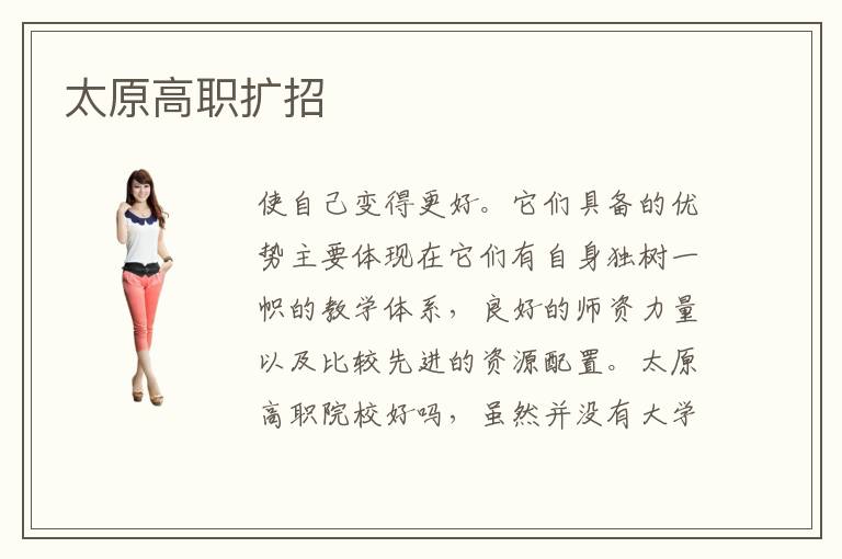 使自己变得更好。它们具备的优势主要体现在它们有自身独树一帜的教学体系,良好的师资力量以及比较先进的资源配置。太原高职院校好吗,虽然并没有大学院校那么好,但这些学校往往更加重视时间,而且老师也会带更多学生到当地的企业参观,了解需求情况,再通过这些需求提升自己的能力。太原高职院校贵不贵,大概是3000元到2万元,不同专业及收费标准也是存在差异的,大多数人都可以承受。太原高职院校如何,要看每个学校的排名情况,老师的水平以及学习的氛围,有些学校并不太重视营造学习的氛围,认为学生在学校里面遵守纪律就可以。如果你对于IT专业和设计专业感兴趣正在犹豫不决不知道现在哪所学校好,那么就有我帮你介绍一下太原高职院校,在太原有好多的学校但是有经验的学校并不多,像太原青鸟学校和太原IT培训学校都挺不错的,都属于太原高职院校,里面不论教学设施还是师资力量都很超前。
