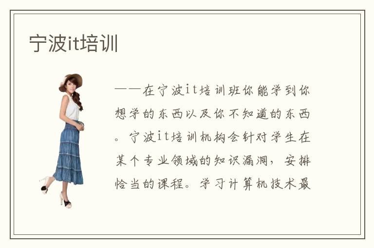 ——在宁波it培训班你能学到你想学的东西以及你不知道的东西。宁波it培训机构会针对学生在某个专业领域的知识漏洞,安排恰当的课程。学习计算机技术最快速的方法,就是报一些关于计算机方面的培训班。这时可看看宁波it培训价格,培训效果,培训价值等等。如果有这样的专业学习困境,可以考虑IT专业机构,因为专业老师会提供更优质的课程内容和学习方法,虽然就算没有太多IT专业的基础,也可以迅速掌握学习技巧,改善学习的进度和效率。同学们如果愿意报班,应该事先了解一下宁波it培训班电话,咨询不同学校的教学方式,培训项目,专业优势等等。宁波it培训班可以解决学员的问题,培养出大量的优质学员,为社会贡献一大批人才。要是希望得到更多老师的指导,学生应该积极积累知识,掌握更多细致课程,或者报名宁波it培训班,由老师来提供科学的辅导方法,展示多层次的教学课程。