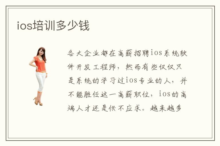 各大企业都在高薪招聘ios系统软件开发工程师,然而有些仅仅只是系统的学习过ios专业的人,并不能胜任这一高薪职位,ios的高端人才还是供不应求。越来越多的人想要去专业的ios培训机构进行学习,不管是零基础的学员还是学过ios想来提高专业技能的学员,大家都能够通过培训机构这四个月左右的时间,学好ios,获得更多的关于ios的经验。那么,ios培训多少钱呢?