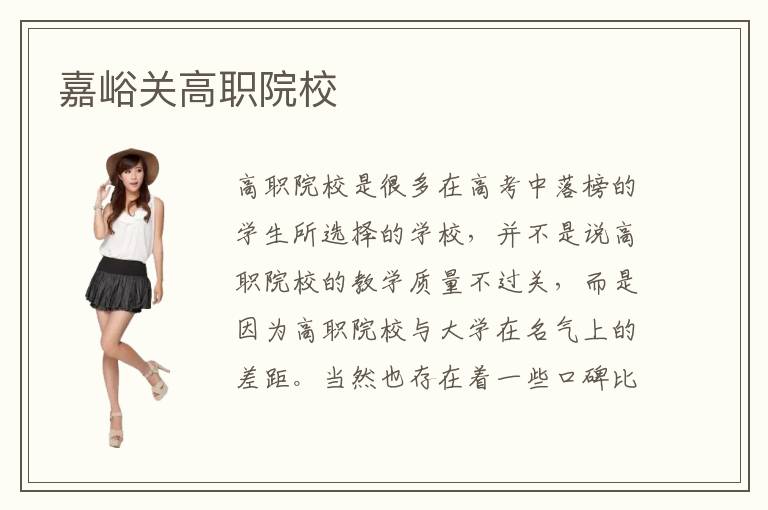 高职院校是很多在高考中落榜的学生所选择的学校,并不是说高职院校的教学质量不过关,而是因为高职院校与大学在名气上的差距。当然也存在着一些口碑比较好的高职院校,例如嘉峪关高职院校就是这样一所靠谱的技术培训学校。嘉峪关高职院校开设了丰富的专业课程,专业的不同所需要学习的课程也就不同了,嘉峪关高职院校贴心的为每位学员都安排了合理的课程教学,使得嘉峪关高职院校在校学员的学习效果都不错。