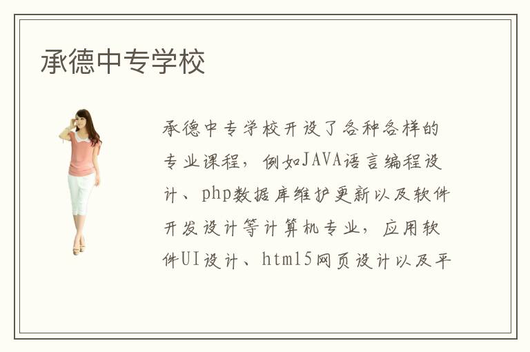 承德中专学校开设了各种各样的专业课程,例如JAVA语言编程设计、php数据库维护更新以及软件开发设计等计算机专业,应用软件UI设计、html5网页设计以及平面设计等美术设计专业,都是承德中专学校中比较受到学员们欢迎的专业课程。承德中专学校为学员们不同的专业学习安排了不同的专业课程,不断调整课程专业安排对于形成良好的学习效果是很帮助的。