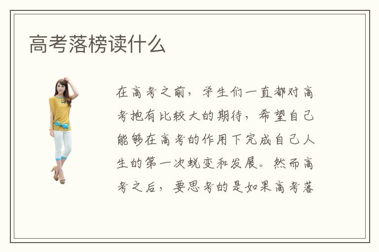在高考之前,学生们一直都对高考抱有比较大的期待,希望自己能够在高考的作用下完成自己人生的第一次蜕变和发展。然而高考之后,要思考的是如果高考落榜读什么?如果高考成功考取满意的学校要选择什么专业课程?高考落榜怎么继续学习是比较困难的问题,需要大家认清自己的定位,找到人生的立足点。高考落榜要学什么比较有前途?高考落榜怎么办?