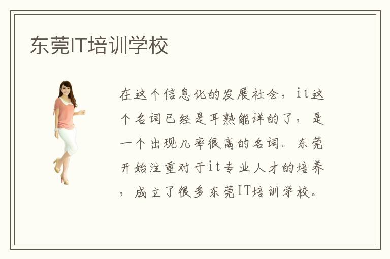 在这个信息化的发展社会,it这个名词已经是耳熟能详的了,是一个出现几率很高的名词。东莞开始注重对于it专业人才的培养,成立了很多东莞IT培训学校。越来越多的计算机培训学校,也让刚刚准备步入计算机专业学习的成员纠结了起来,不知道究竟该选择怎样的培训机构去学习,不知道到底哪家培训机构的师资力量强大、教学质量比较高。