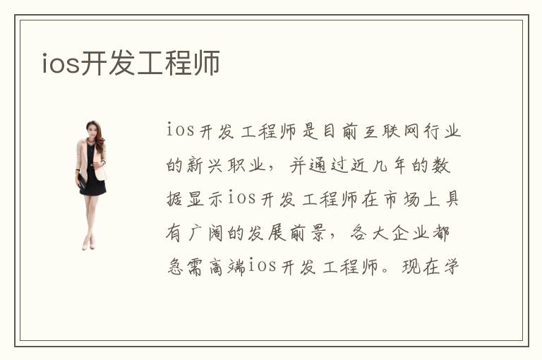 ios开发工程师是目前互联网行业的新兴职业,并通过近几年的数据显示ios开发工程师在市场上具有广阔的发展前景,各大企业都急需高端ios开发工程师。现在学习ios软件开发的人并不少,但是真正能够把ios学精学透的人却不多。那么,如何成为一个优秀的ios开发工程师呢?首先英语是作为程序员一个很重要的技能,很多优秀的文章都是英文版本的。
