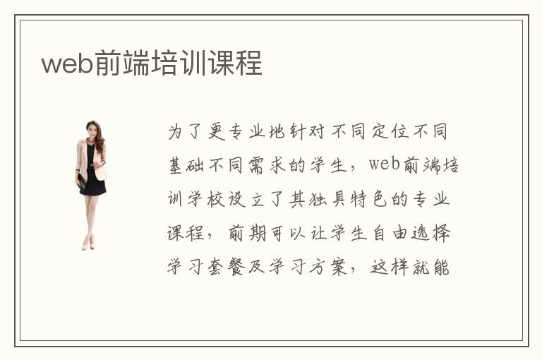 为了更专业地针对不同定位不同基础不同需求的学生,web前端培训学校设立了其独具特色的专业课程,前期可以让学生自由选择学习套餐及学习方案,这样就能达到学习需求、学习效率的最大化。web前端培训课程主要是涉及电脑编程培训、逻辑设计思维拓展等等。web前端培训课程表比较灵活,最大限度满足学生的学习需要。web前端培训课程内容全面吗?