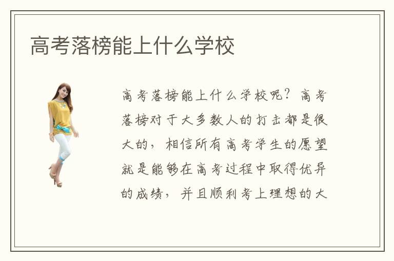 高考落榜能上什么学校呢?高考落榜对于大多数人的打击都是很大的,相信所有高考学生的愿望就是能够在高考过程中取得优异的成绩,并且顺利考上理想的大学,从而能够取得优秀的文凭在未来的就业过程中找到一份各方面都令自己比较满意的工作。然而由于各种原因并不是所有人都可以顺利考上大学的,这些没有考上大学的同学可以选择去专业的技术培训学校进行学习。